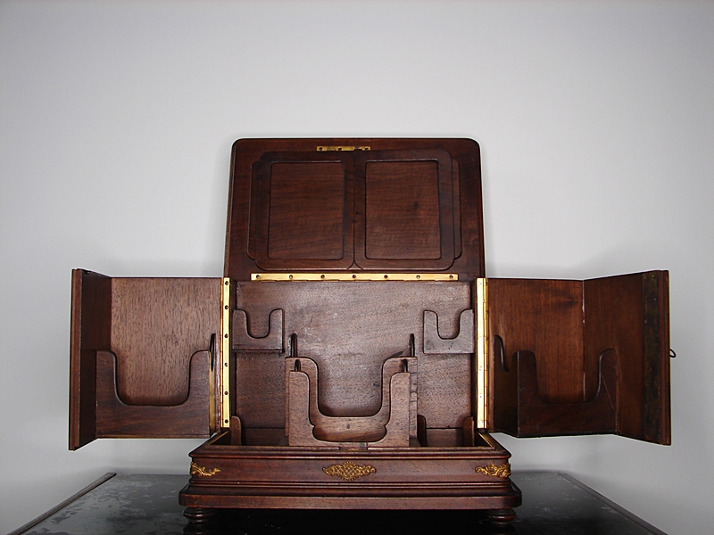 Sepet - skrzyneczka, z otwieranym pulpitem, przeznaczona do przechowywania kosztowności, bibelotów l,zdjęć lub jako przenośne małe biureczko.