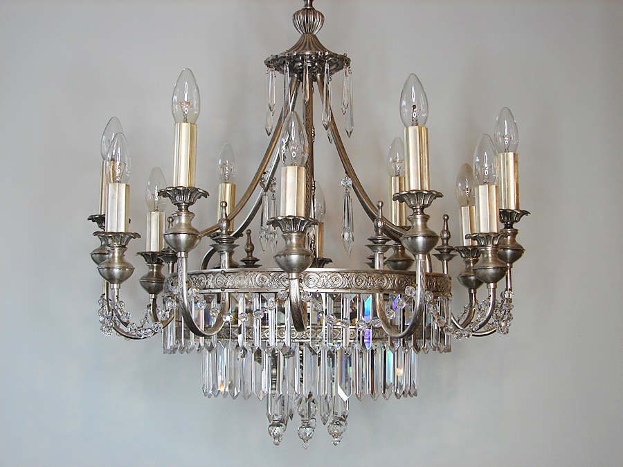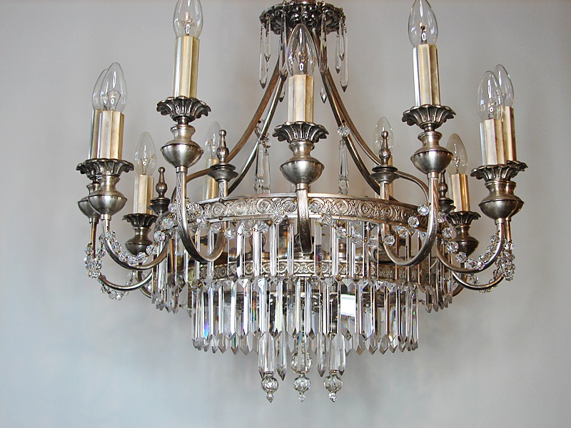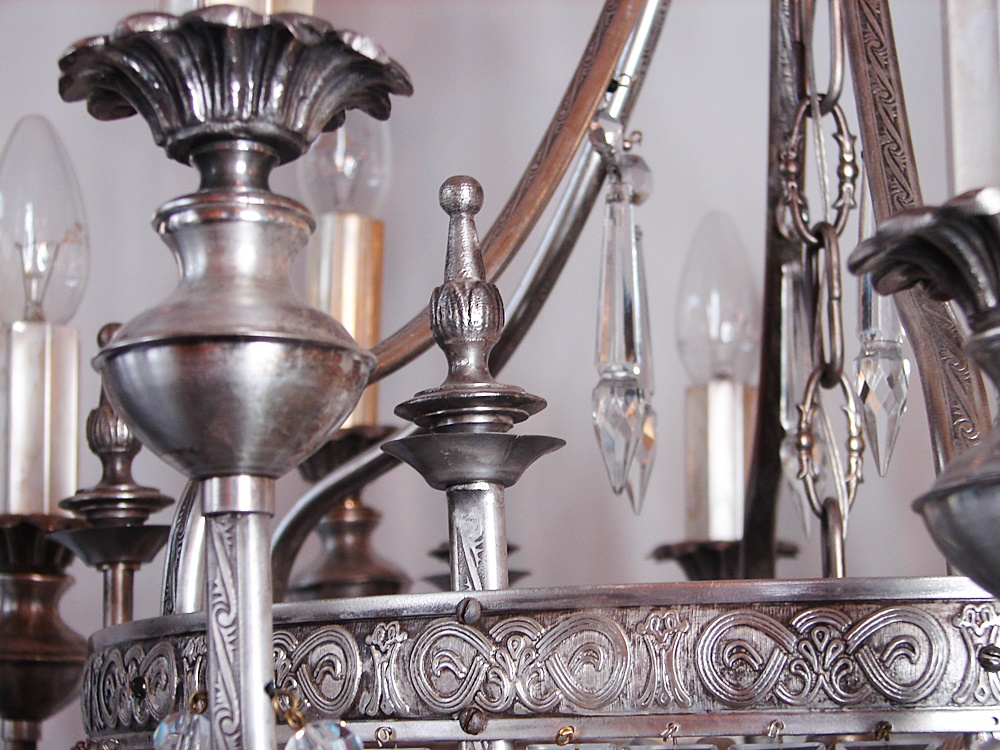 Piękny ekskluzywny,posrebrzany,zabytkowy żyrandol.