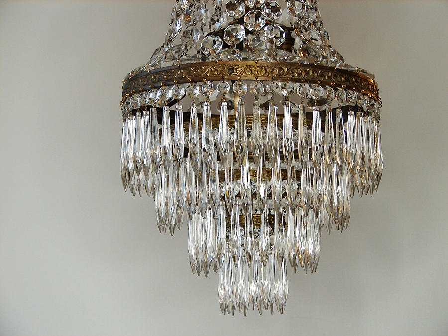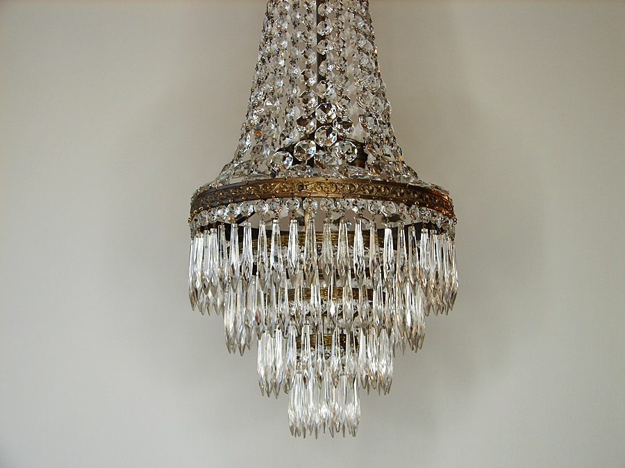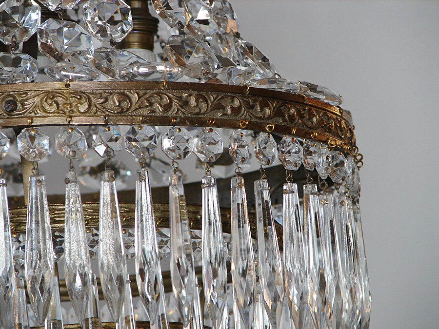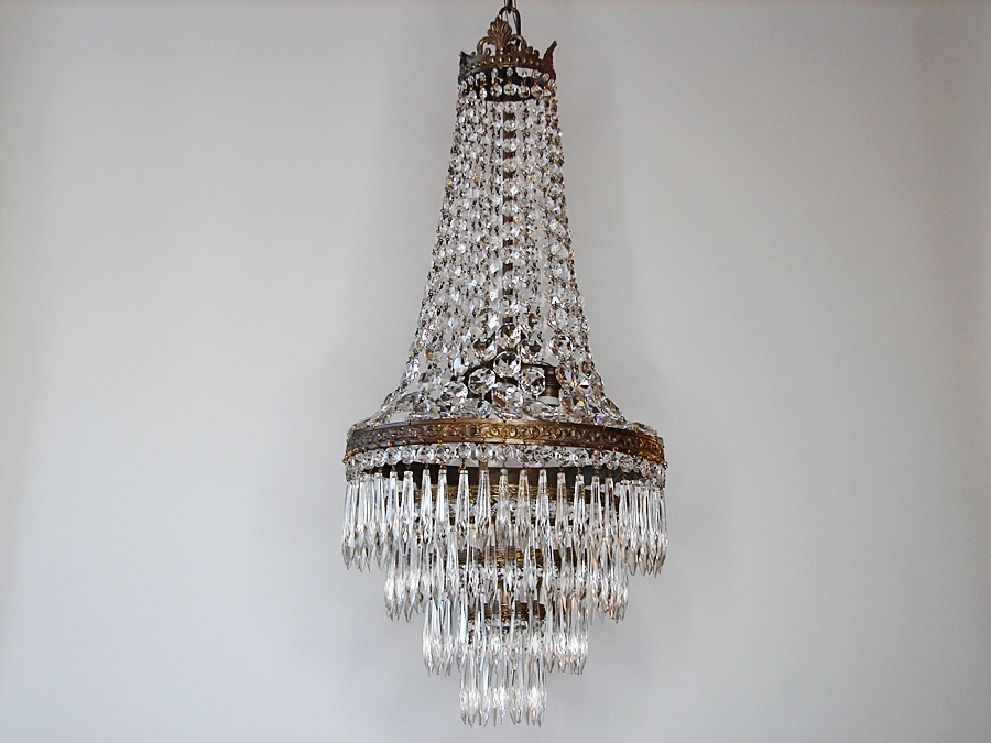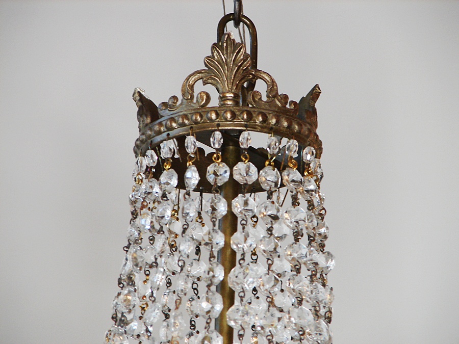 Piękna lampa kryształowa wykonana na początku XX wieku, o mosiężnej konstrukcji, na 4 światła . Została poddana renowacji. Elektryka zmieniona zgodnie z współczesnymi standardami.