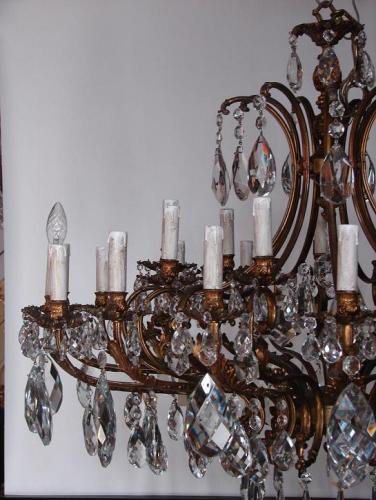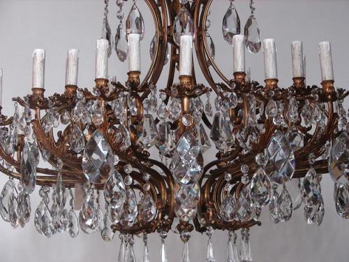 WSPANIAŁY KRYSZTAŁOWY ŻYRANDOL Z PRZEŁOMU XX WIEKU ZDOBIONY RÓŻNEG RODZAJU KRYSZTAŁAMI,ŻYRANDOL WYKONANY ZE ZŁOCONEGO BRĄZY FORMA KLATKOWA, RAMIONA ZDOBIONE LIŚĆMI AKANTU,IDEALNY DO WSPANIAŁEJ REZYDENCJI,APARTAMENTU ,PAŁACYKU CZY DWORKU.UŚWIETNI I NADA DOSTOJNOŚCI KOŻDEMU POMIESZCZENIU W KTÓRYM BĘDZIE SIĘ ZNAJDOWAŁ