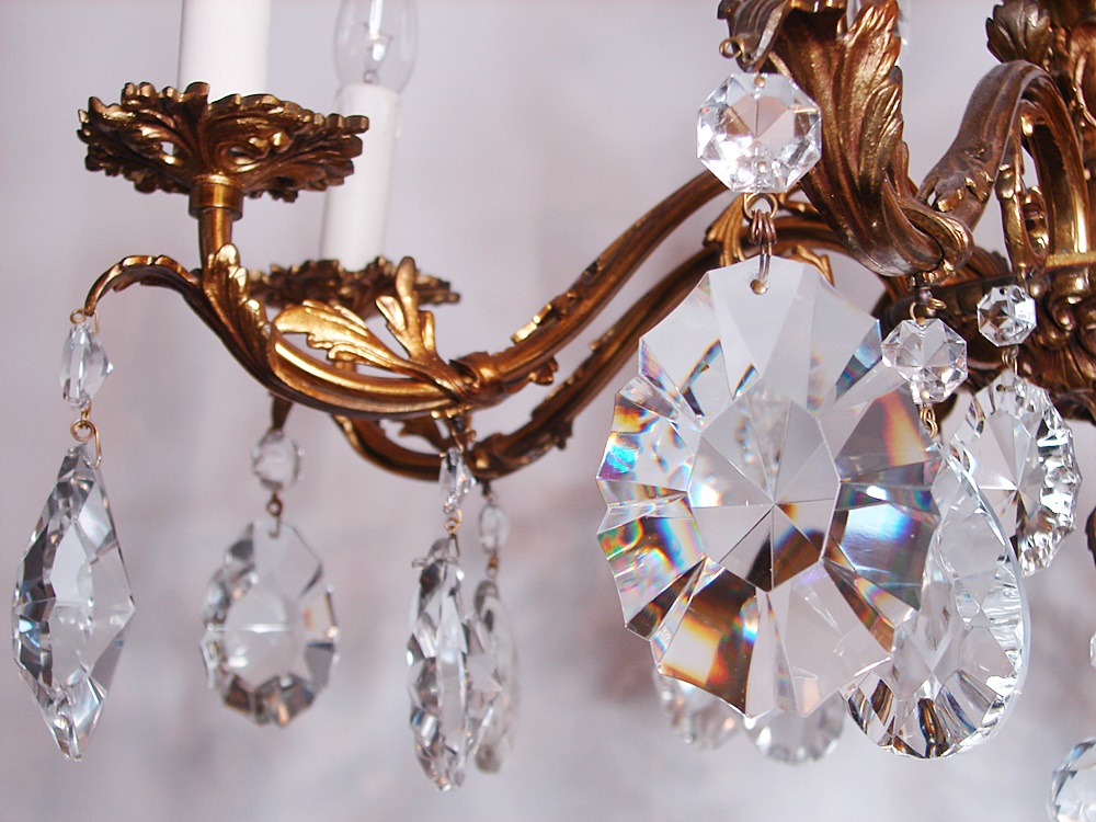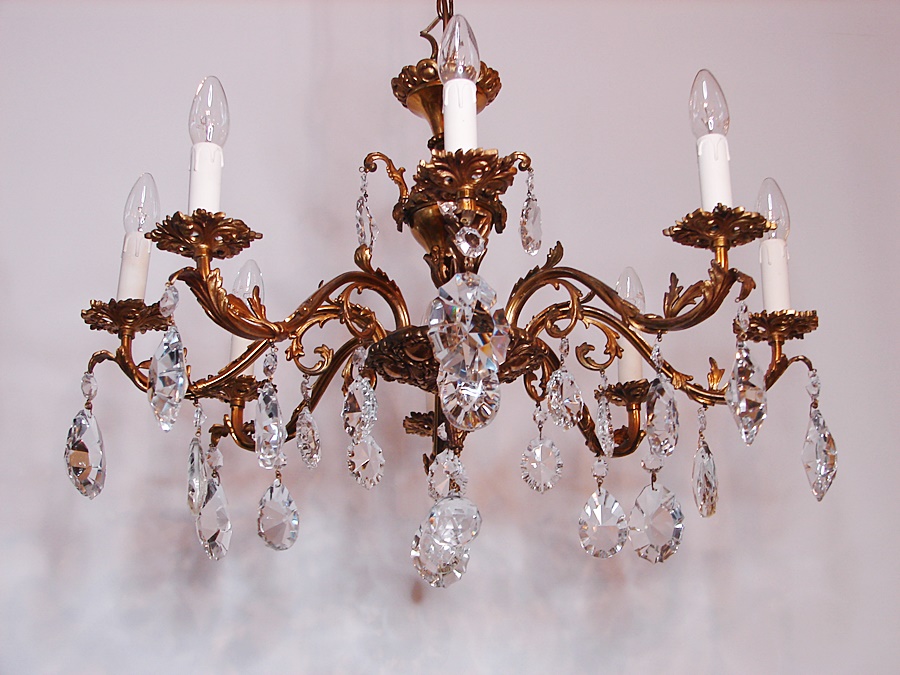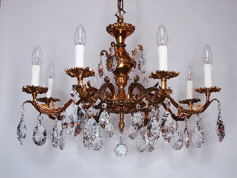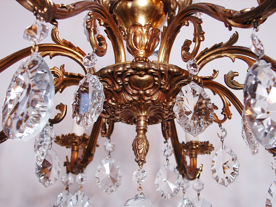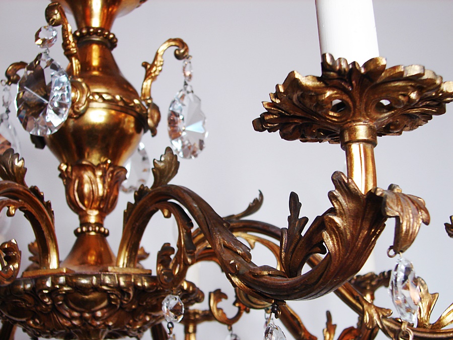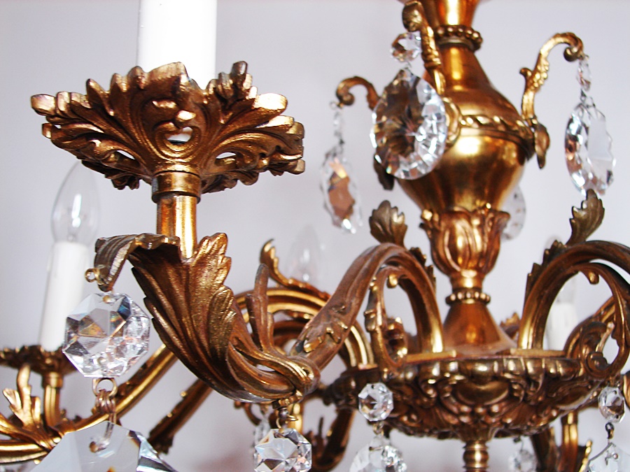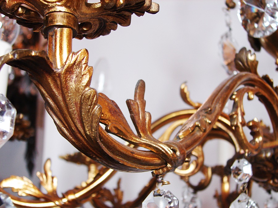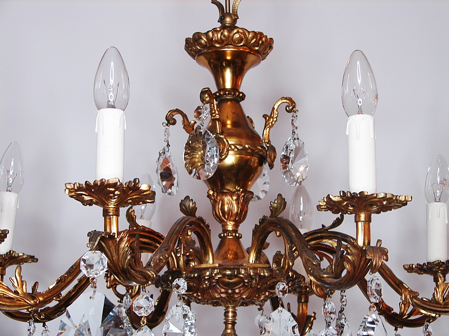 Pozłacany francuski ,mosiężny żyrandol , pochodzący z XX wieku.