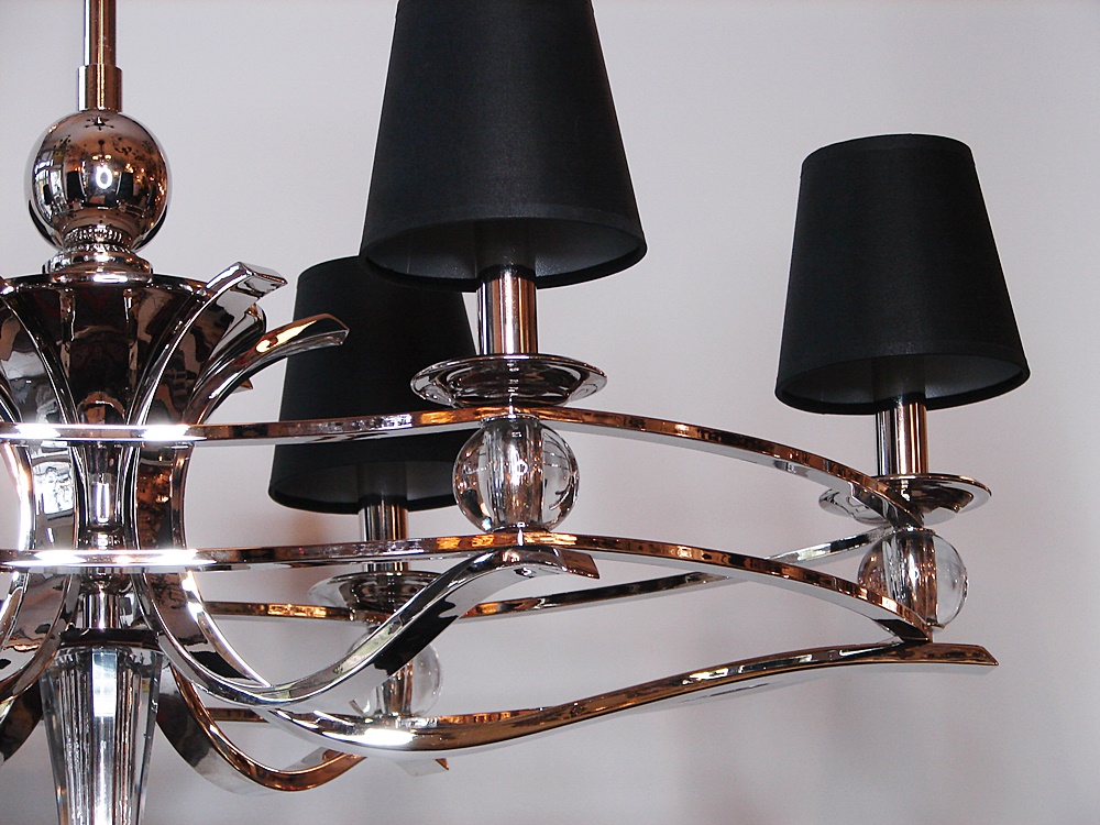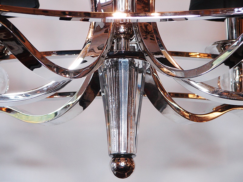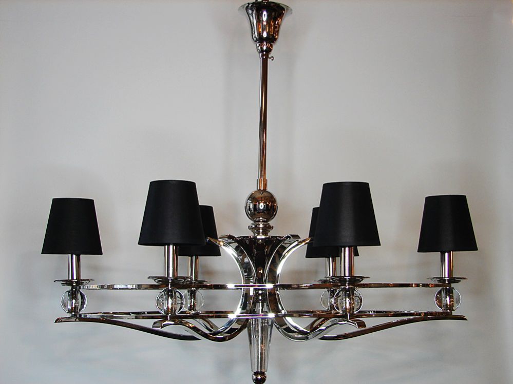 Żyrandol salonowy wykonany z niklowanego mosiądzu.