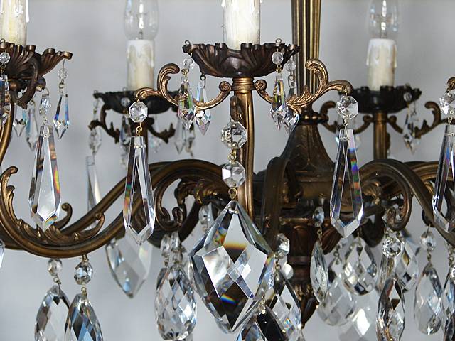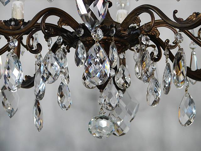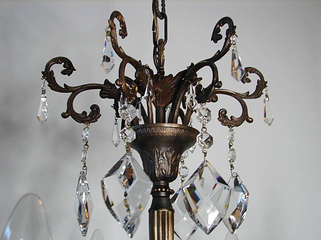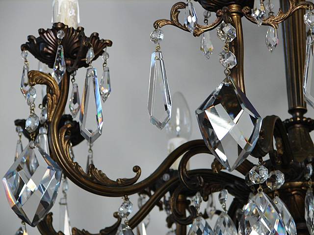 ŻYRANDOL SALONOWY ZDOBIONY KRYSZTAŁAMI Z PIERWSZEJ POŁOWY XX WIEKU PO RENOWACJI