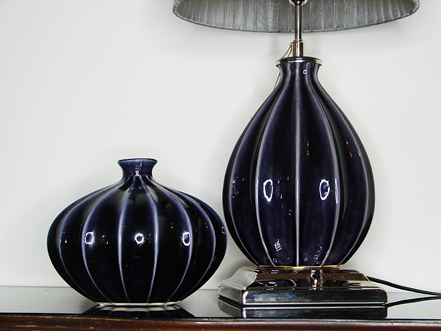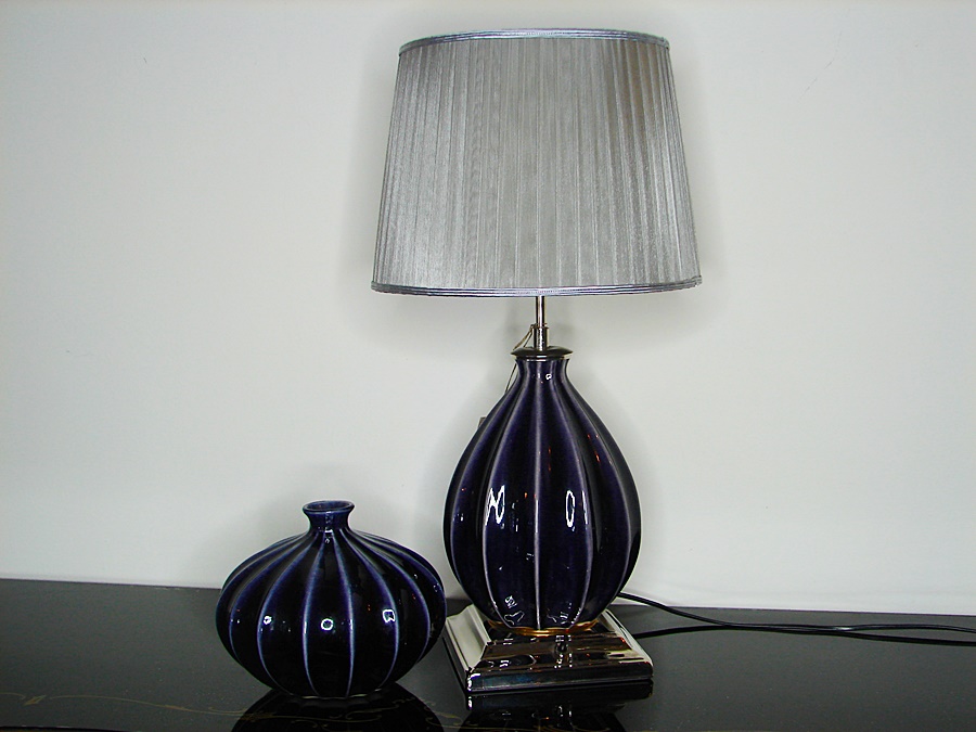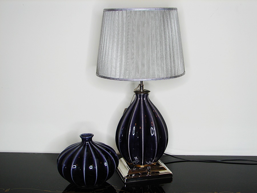 Komplet lampa z abażurem i wazon.