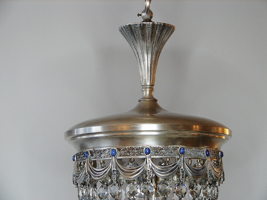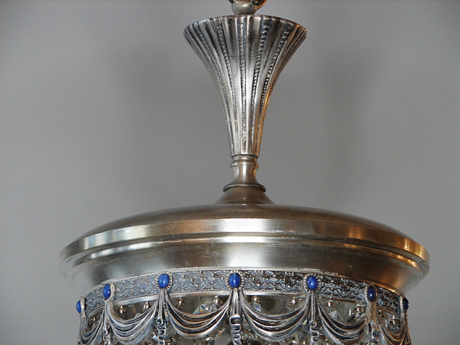 Kryształowa posrebrzana lampa