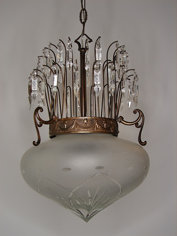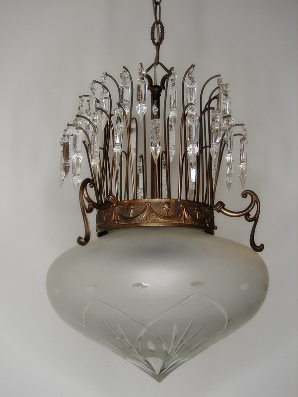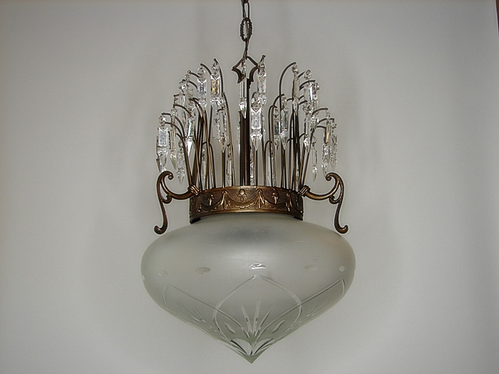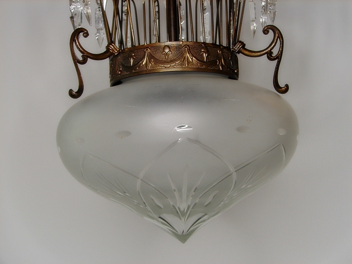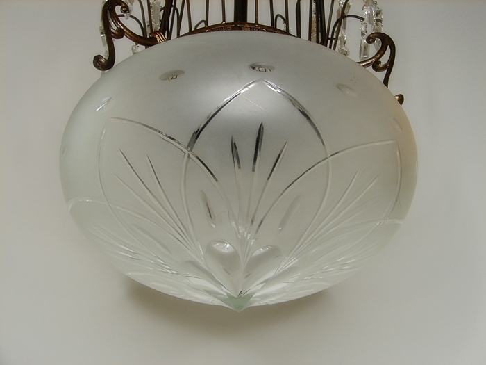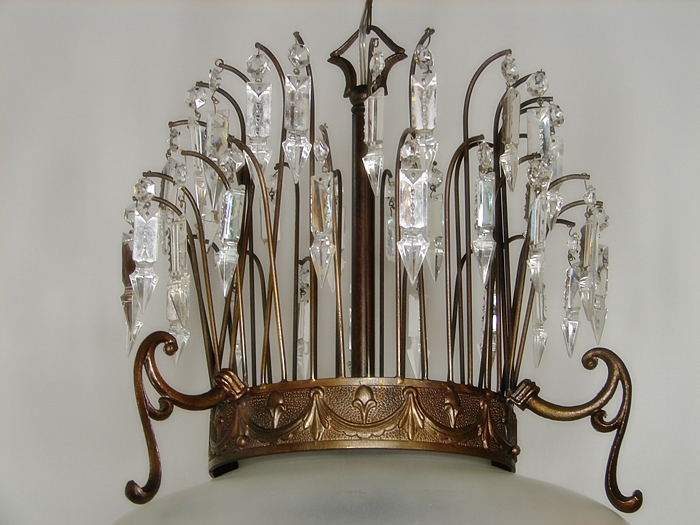 Materiał: mosiądz,szkło szlifowane,kryształy-groty