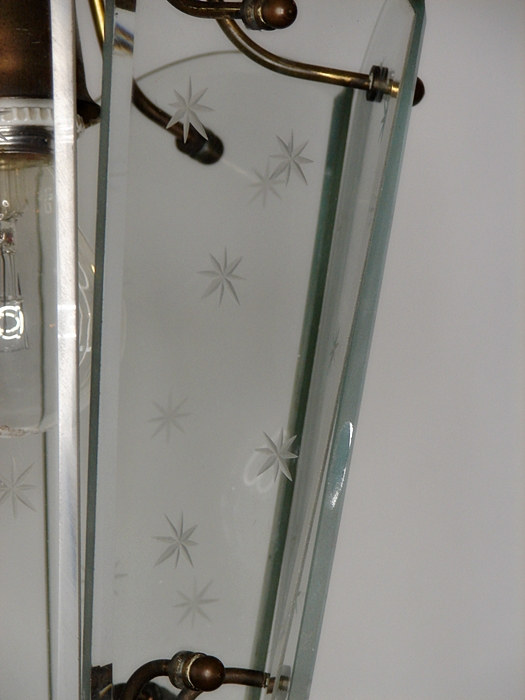 Materiał: mosiądz,szkło zdobione,