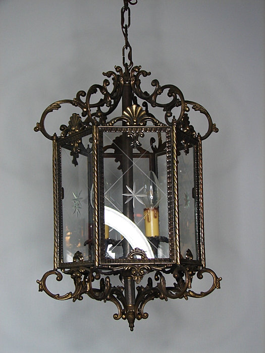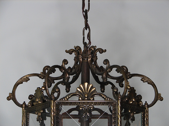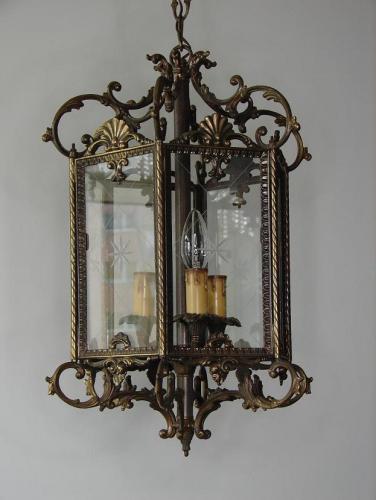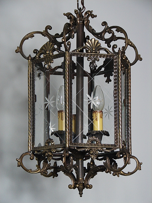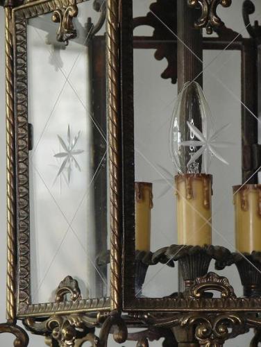 LATARENKA WYKONANA Z MOSIĄDZU OPRAWA W BAROKOWYM STYLU,SZLIFOWANE SZYBKI W BARDZO DOBRYM STANIE