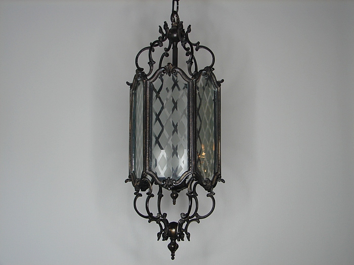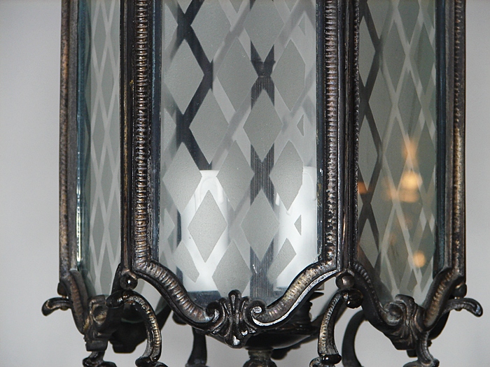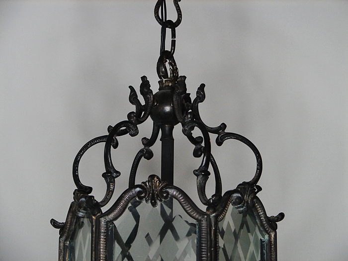 Lampa typu latarenka, z początku XX wieku, stanowi dopełnienie stylowo wykończonego przedpokoju lub innego pomieszczenia.
